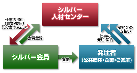 - シルバー人材センターは、公共団体をはじめ、企業、家庭などから高齢者にふさわしい仕事を引き受け、シルバー人材センター会員に仕事を提供しています。